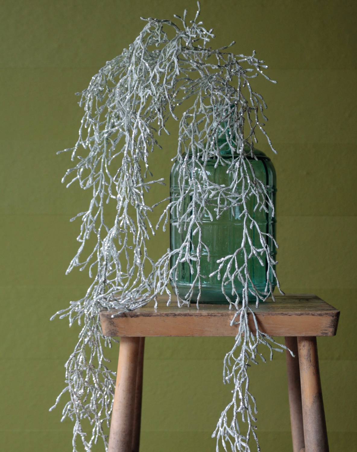 Tillandsia Usneoides artificiale NEAL su stelo, glitter, argento, 90cm