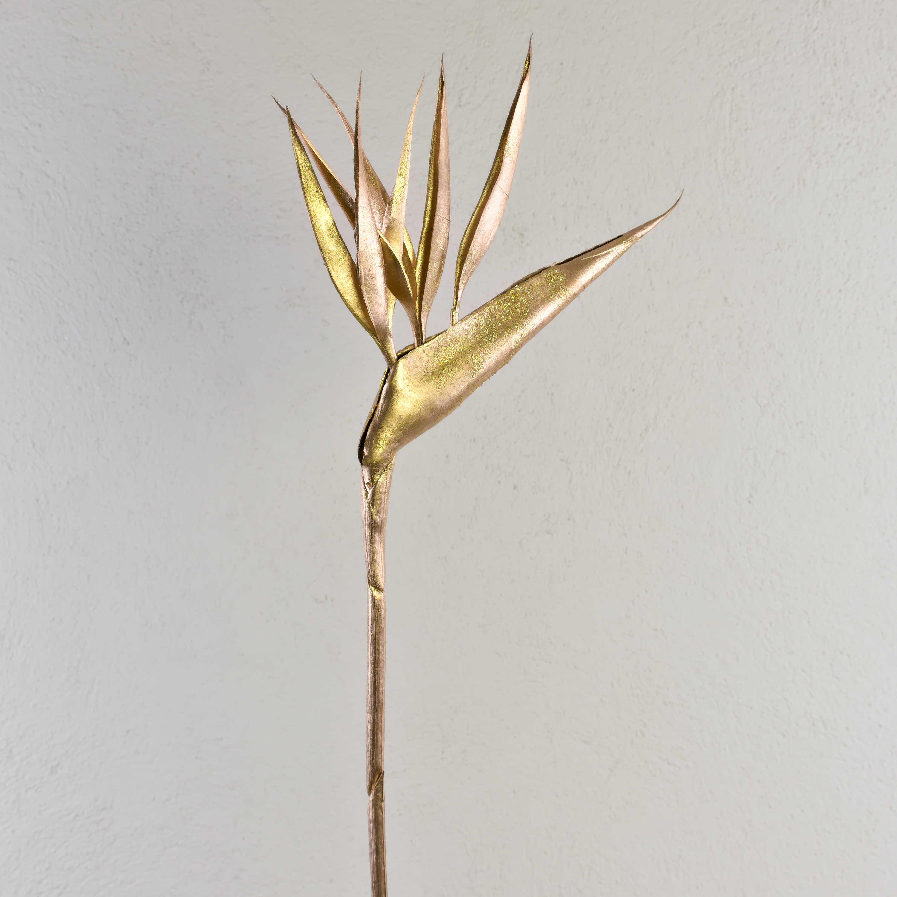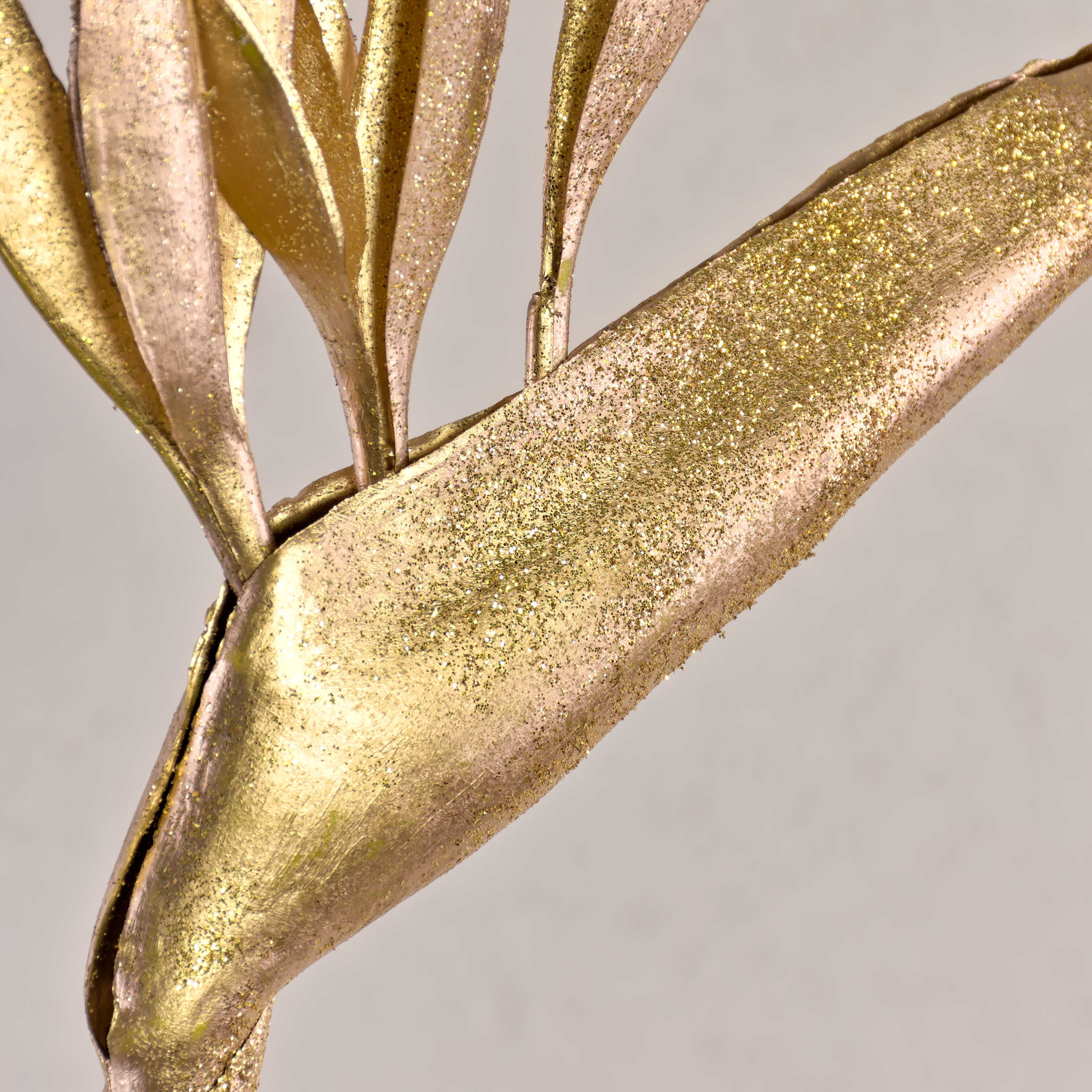 La strelizia di plastica BALTZE di colore oro è alto ca. 80 cm. La lavorazione di alta qualità crea un aspetto naturale.