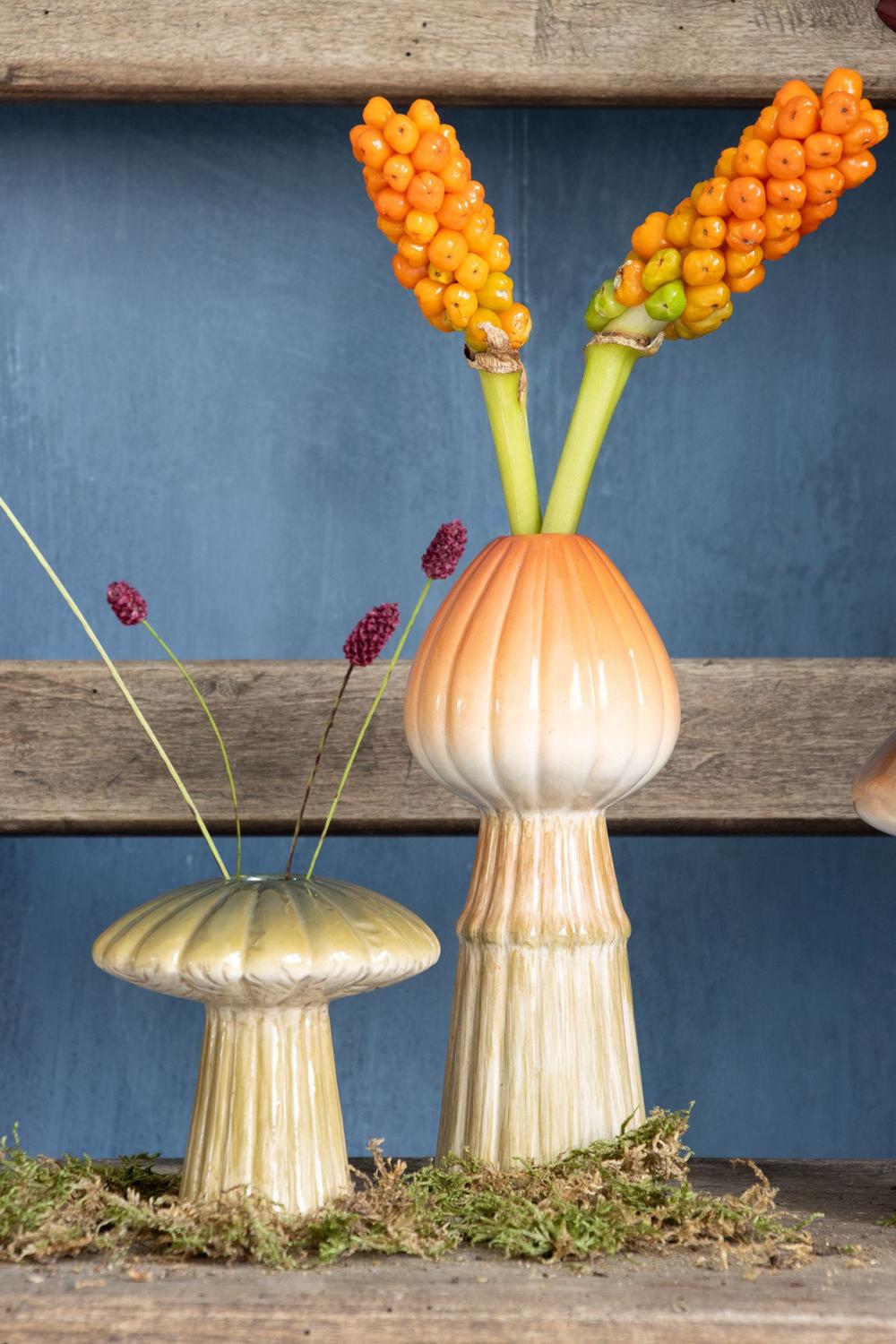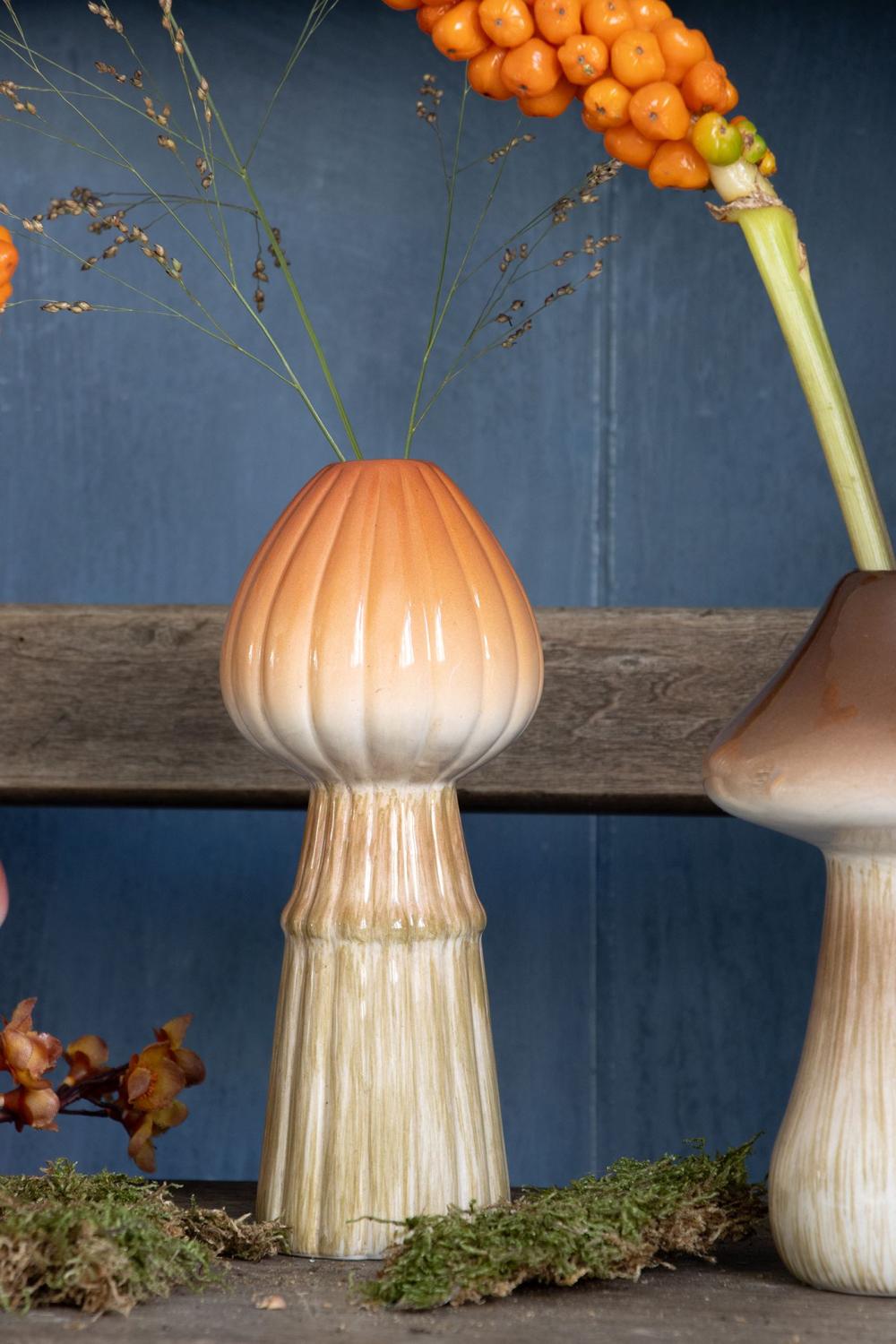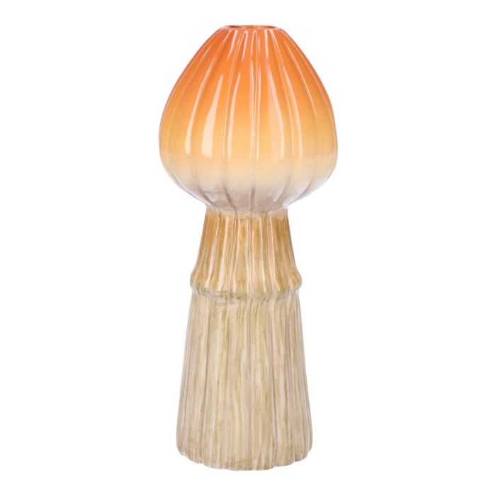 Vaso a fungo in ceramica RADOMILA, scanalature, arancione-beige, 18cm, Ø7,4cm