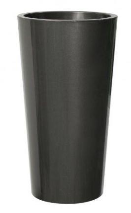 Vaso alto rotondo THERESITA in plastica, con inserto, set di irrigazione, antracite, 75 cm, Ø40 cm