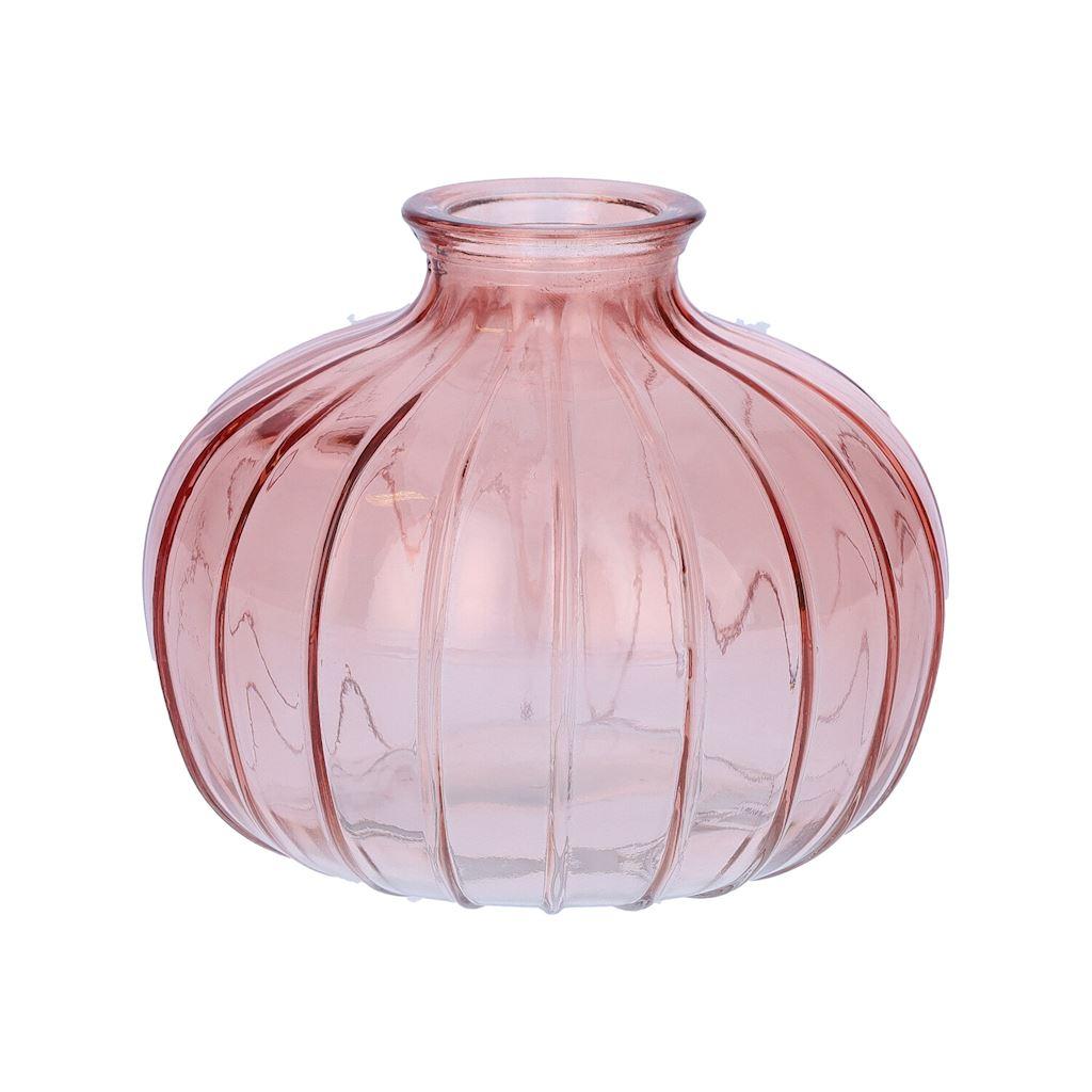Vaso da fiori ALFHARD, vetro con scanalature, rosa antico trasparente, 8,5 cm, Ø 10,5 cm
