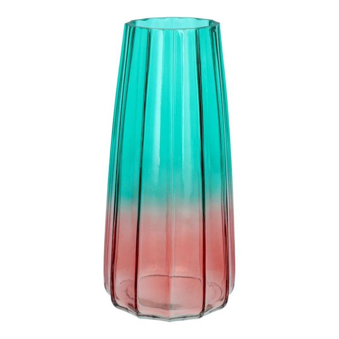 Vaso da fiori AMALFRIED con scanalature, vetro, turchese-rosa, 21 cm, Ø 10 cm