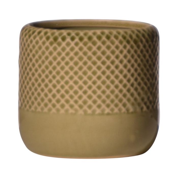 Vaso da fiori in ceramica DANYLO, motivo a rombi, verde-marrone, 10,5cm, Ø12cm