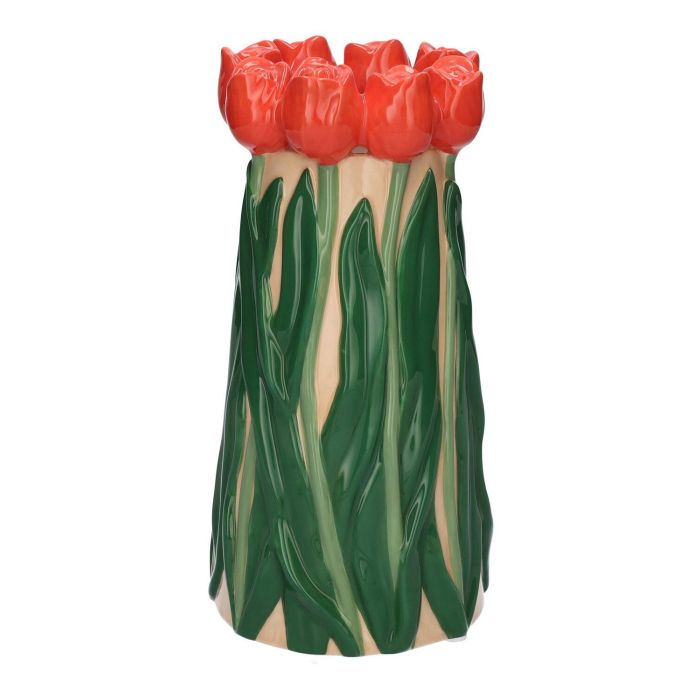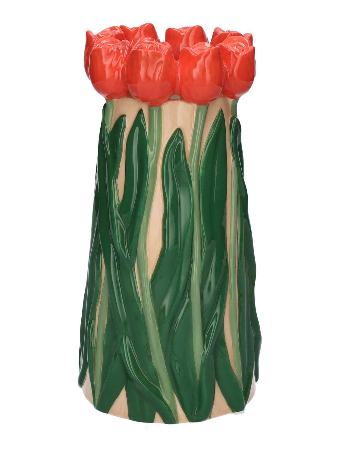 Vaso da fiori LIMEA in dolomite, tulipani 3D, beige-rosso-verde, 24,5 cm, Ø 12,5 cm
