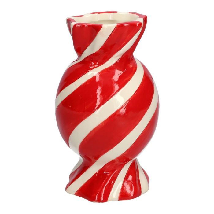 Vaso da fiori panciuto Bonbon AMIEL in ceramica, con linee oblique, rosso-bianco, 15 cm, Ø 8,5 cm