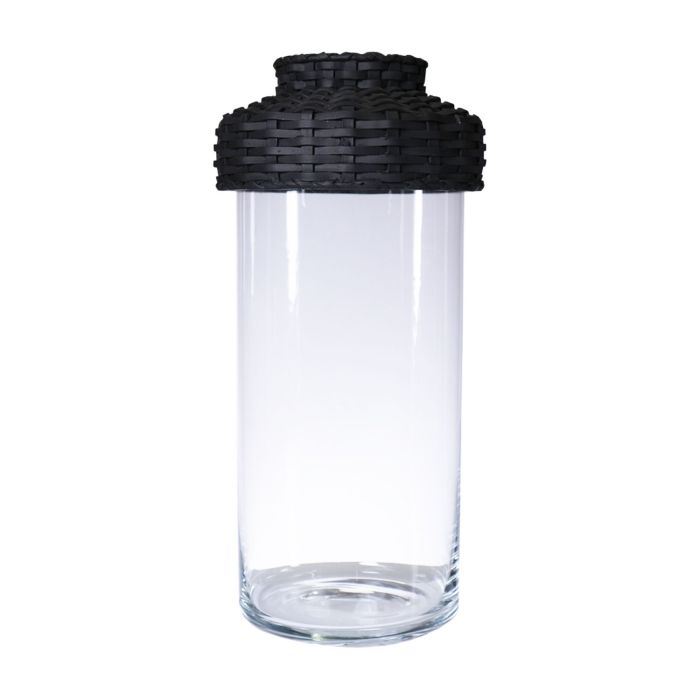 Vaso di vetro decorativo JINTANA con coperchio o piede in rattan, trasparente-nero, 45cm, Ø18,5cm