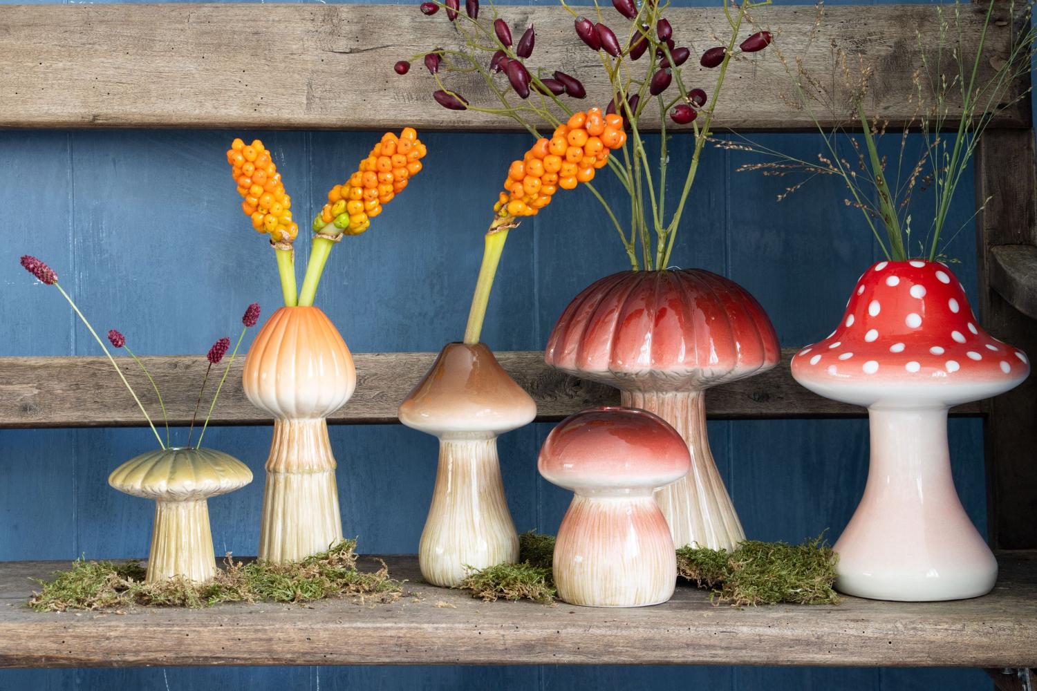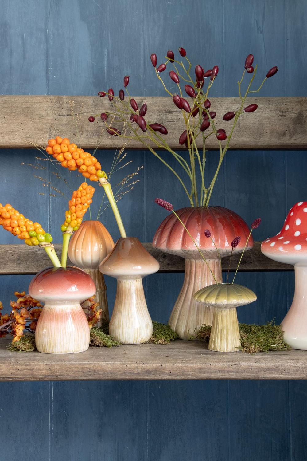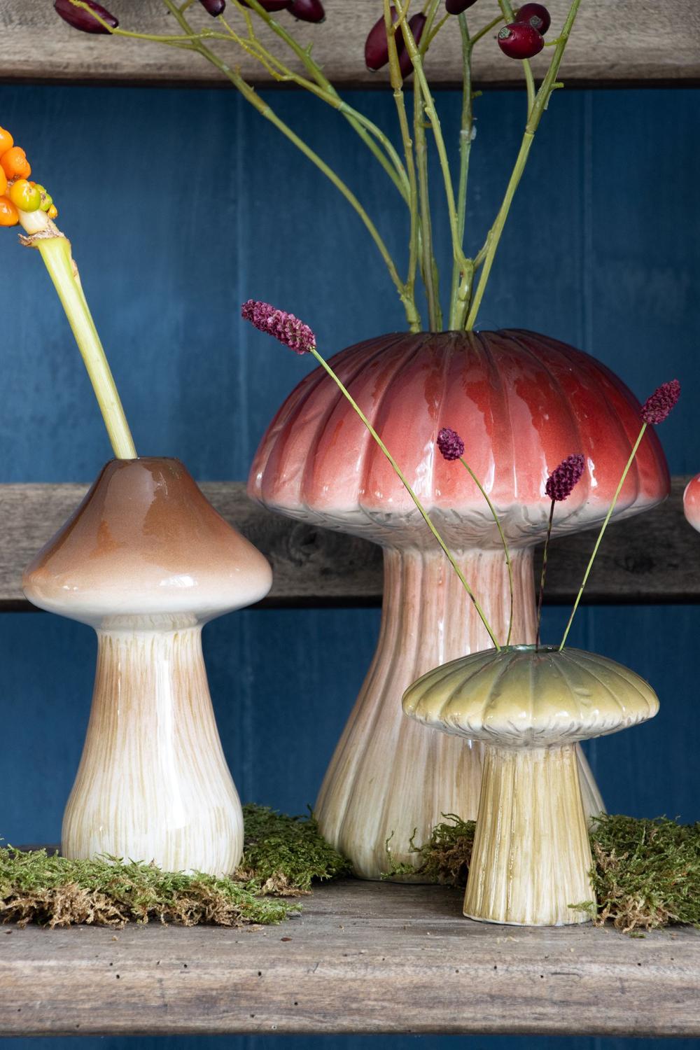 Vaso in ceramica ovolo malefico SEBALDE, scanalature, rosso-beige, 21cm, Ø16cm