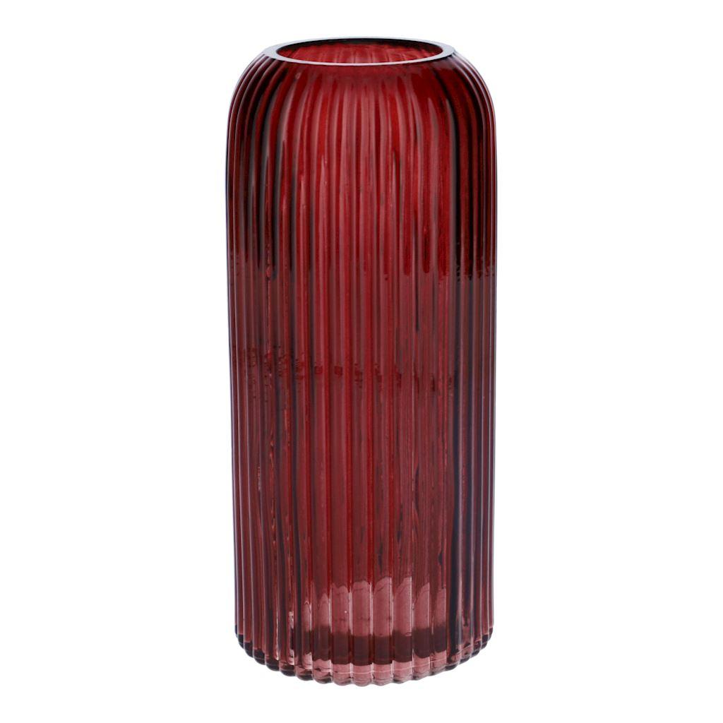 Vaso in vetro ALBURGIS con scanalature, rosso bordeaux trasparente, 20 cm, Ø 8,7 cm