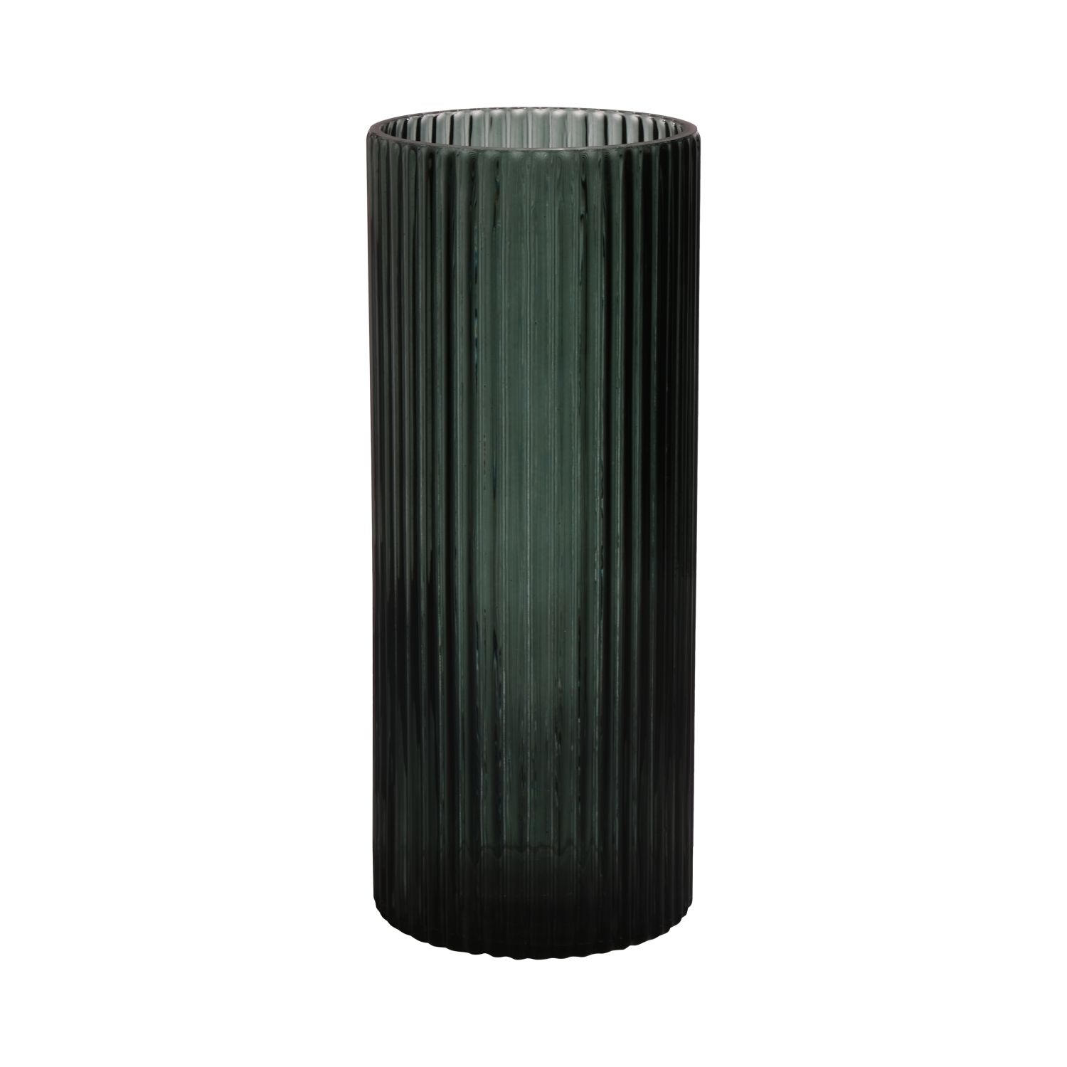 Vaso moderno di vetro SORCHA con scanalature, verde bosco-trasparente, 30cm, Ø12,5cm