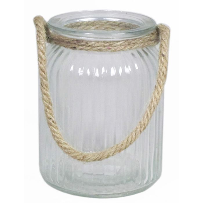 Vaso per candele ADANNA con manico, strisce verticali, trasparente, 14,5cm, Ø11cm