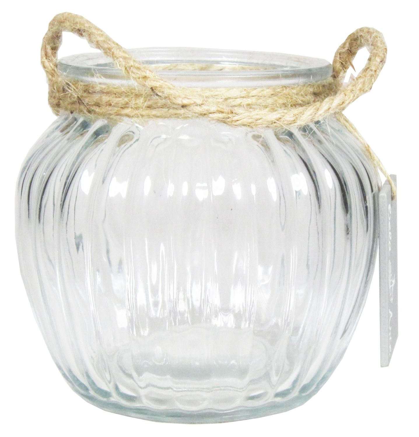 Vaso per candele AKILI con manico, strisce verticali, trasparente, 13,5cm, Ø15cm