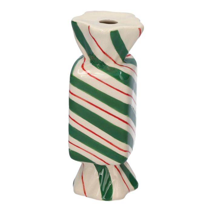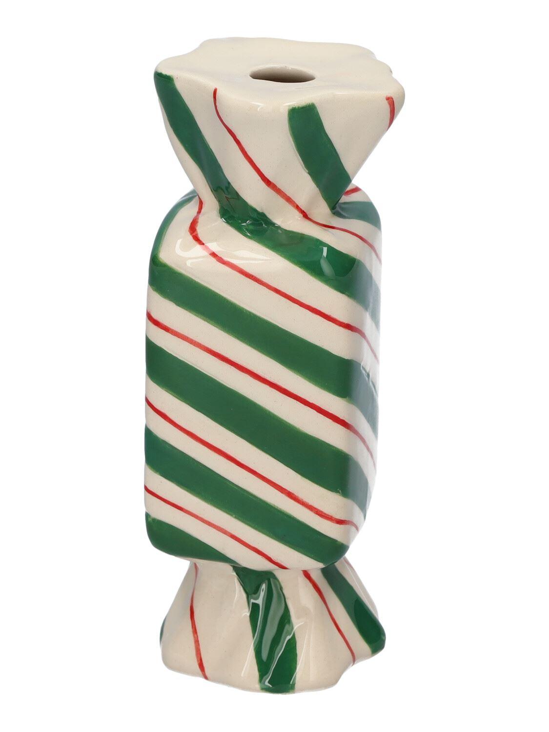 Vaso quadrato per fiori Bonbon AMIEL in ceramica, con linee oblique, verde-rosso-bianco, 4,5x4,5x11,5 cm