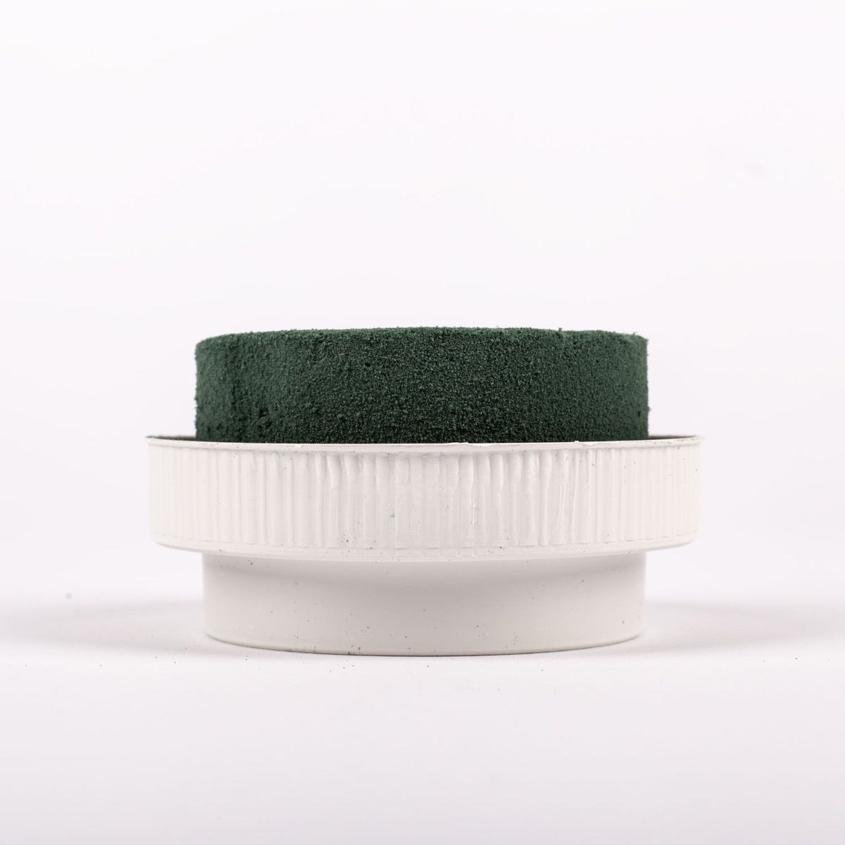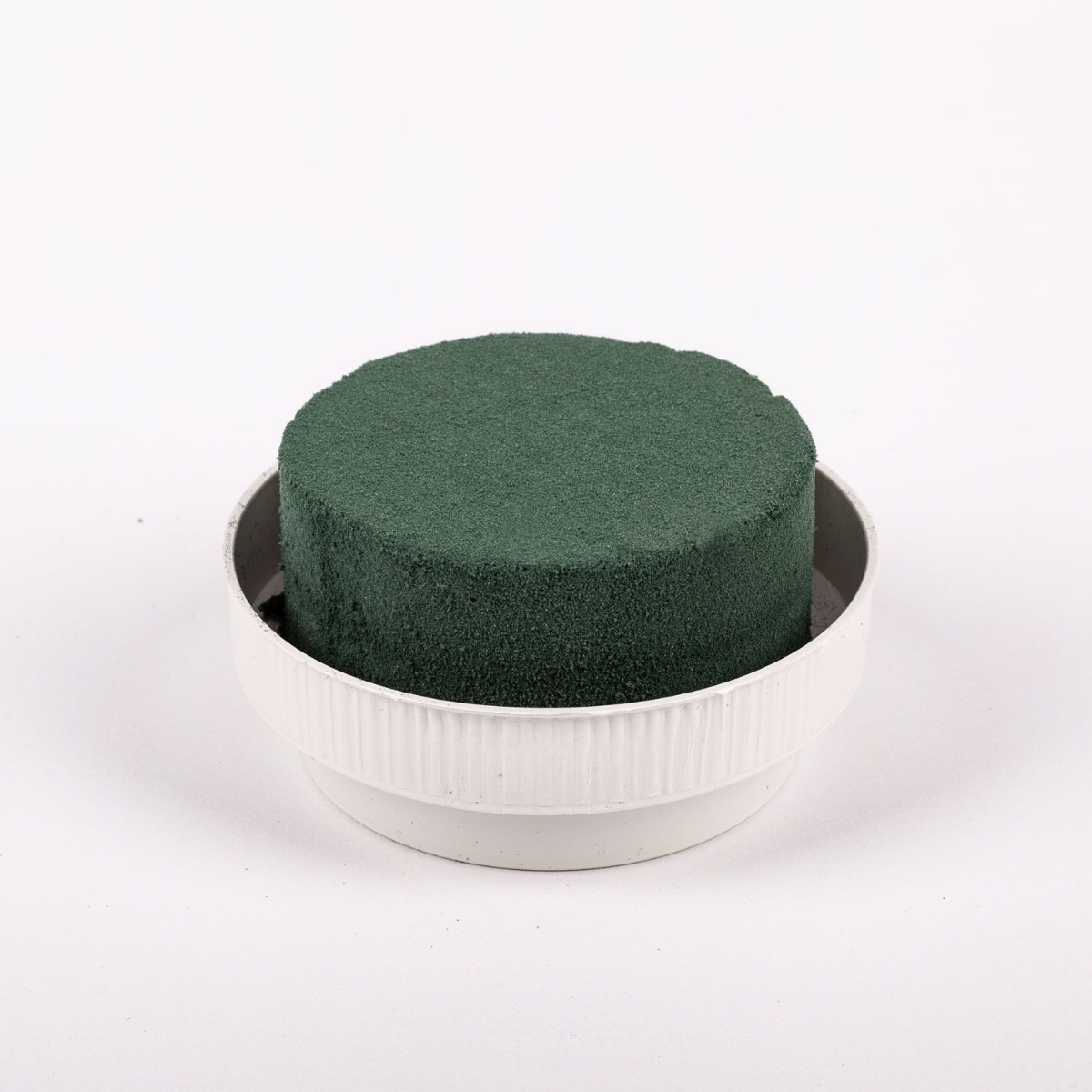 Vaso rotondo con base umida ONORATA per composizioni floreali, verde-bianco, 5,5 cm, Ø 10 cm